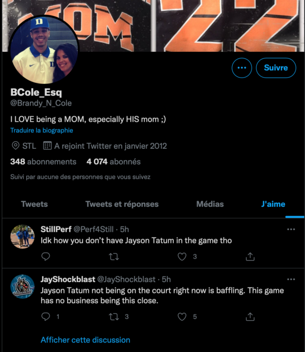 Brandy Cole, la maman de Jayson Tatum, en voulait énormément à Gregg Popovich sur cette fin de rencontre, heureusement que le titre olympique était au bout pour Team USA. Et pour évacuer sa frustration et son stress devant sa télévision, elle ne s’est pas contentée d’aimer un seul message… Elle s’en est donnée à coeur joie !