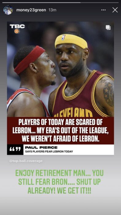 Devenu consultant depuis la reprise de la saison, l’âme des Warriors peut enfin s’exprimer de façon plus objective sur ses adversaires. C’est ainsi que ces derniers mois, Draymond s’est transformé en un grand supporter du King. D’ailleurs, après les attaques de Paul Pierce visant à minimiser le talent de LeBron, le triple champion NBA a lâché un énorme tacle les deux pieds décollés sur la légende des Celtics.