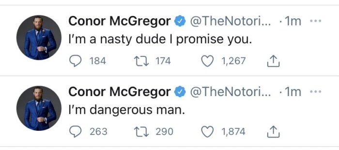 Comprenant qu’il était allé trop loin, McGregor a donc rapidement supprimé certains tweets, dont celui ci-dessous qui reste totalement énigmatique sur la signification. Certains pensent qu’il s’agit d’une menace de mort en Irlandais.