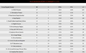 L’Olympiacos réalise la bonne opération de la journée. Face au champion en titre, le Fenerbahçe, les grecs lâchent les chevaux et infligent une très lourde défaite aux hommes de Zeljko Obradovic (+25). Vassilis Spanoulis et ses coéquipiers profitent aussi des mauvais résultats du Panathinaïkos et du Real pour reprendre la seconde place du classement. Anthony Gill nous offre une claquette clutch pour donner la victoire au Khimki. Dairis Bertans crucifie le Barça à 5 secondes de la fin. Enfin, Vitoria se fait plaisir contre l’Etoile Rouge de Belgrade (103 points marqués) avec un bon Rodrigue Beaubois (25 points). Ils reviennent à une victoire du Maccabi Tel Aviv qui s’est incliné en lituanie contre le Zalgiris Kaunas et Axel Toupane (15 points et 15 d’évaluation).