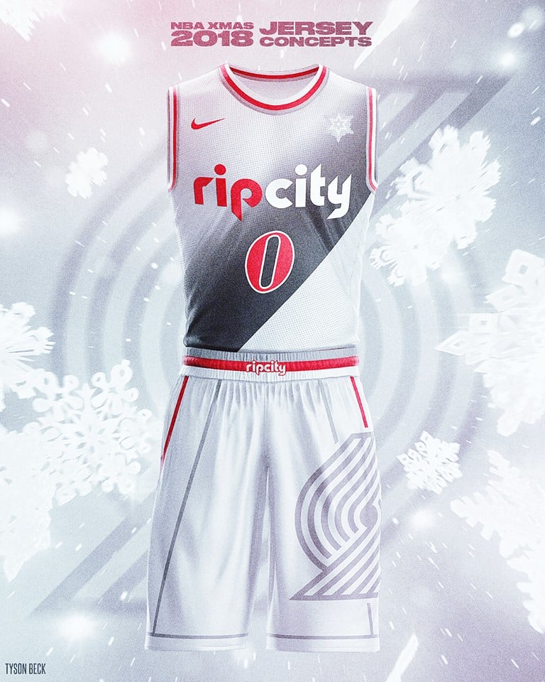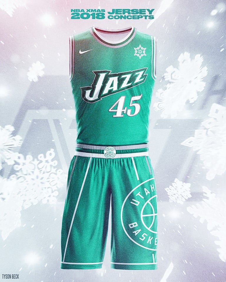 Cinq maillots blancs, cinq maillots colorés. Tyson Beck a fait les choses bien, puisqu’il a imaginé les maillots que porteront les dix franchises en action pour le Christmas Day. Sixers, Blazers, Thunder, Lakers et Bucks ont vu leurs uniformes imaginé en version blanche, tandis que Warriors, Celtics, Knicks, Rockets et Jazz obtiennent une version colorisée. Un léger effet givré et un joli flocon de neige là où les équipes placent habituellement leurs sponsors. On note aussi la présence du logo des franchises sur le côté gauche du short. Découvrez les visuels ci-dessous :