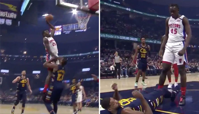 Après à peine 4 minutes de jeu, Sekou, titulaire à la place de Blake Griffin, reçoit le ballon en tête de raquette. Une feinte de tir pour enrhumer un Kevin Love qui risque de faire un nouveau caprice, un drive explosif… Puis le poster de ce début d’année ! Les images se passent de commentaires.