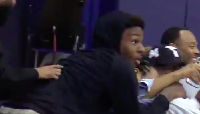 Spectateur du match de son petit frère Bryce James, Bronny a pété les plombs après un cross réussi de son cadet… et offre une célébration très aérienne.