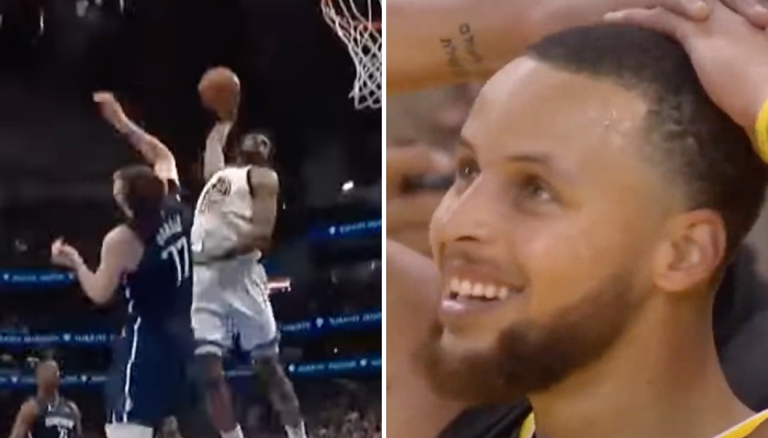 Au beau milieu du 4ème quart-temps, Andrew Wiggins a décidé d’empirer un peu plus la soirée de Luka en lui offrant sans respect un poster monumental. Dans un premier temps annulé, ce dernier a finalement été validé par le corps arbitral, pour le plus grand bonheur de Golden State… et des téléspectateurs. La preuve, avec les réactions enflammées de Zach Lavine, Bradley Beal ou encore Jamal Murray !