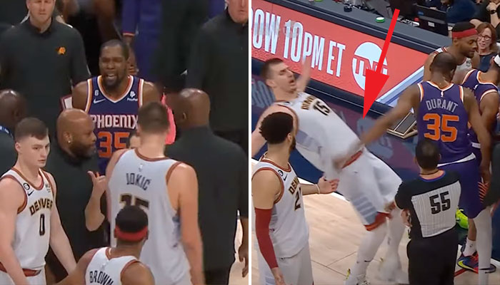 En prime ? Il s’est permis d’énerver un peu Kevin Durant. Maladroit dans cette série, l’ancien Net ne joue pas à son meilleur niveau dans l’Arizona jusqu’à maintenant. Si bien qu’il s’est contenté d’un 10-24 au tir et d’un -19 de différentiel dans ce Game 5. Preuve de la tension grimpante chez la star ? Cette poussette sur le Serbe, qui s’est approché un peu trop près lors d’une discussion d’équipe. Les paroles ont d’ailleurs fusé dans la foulée…